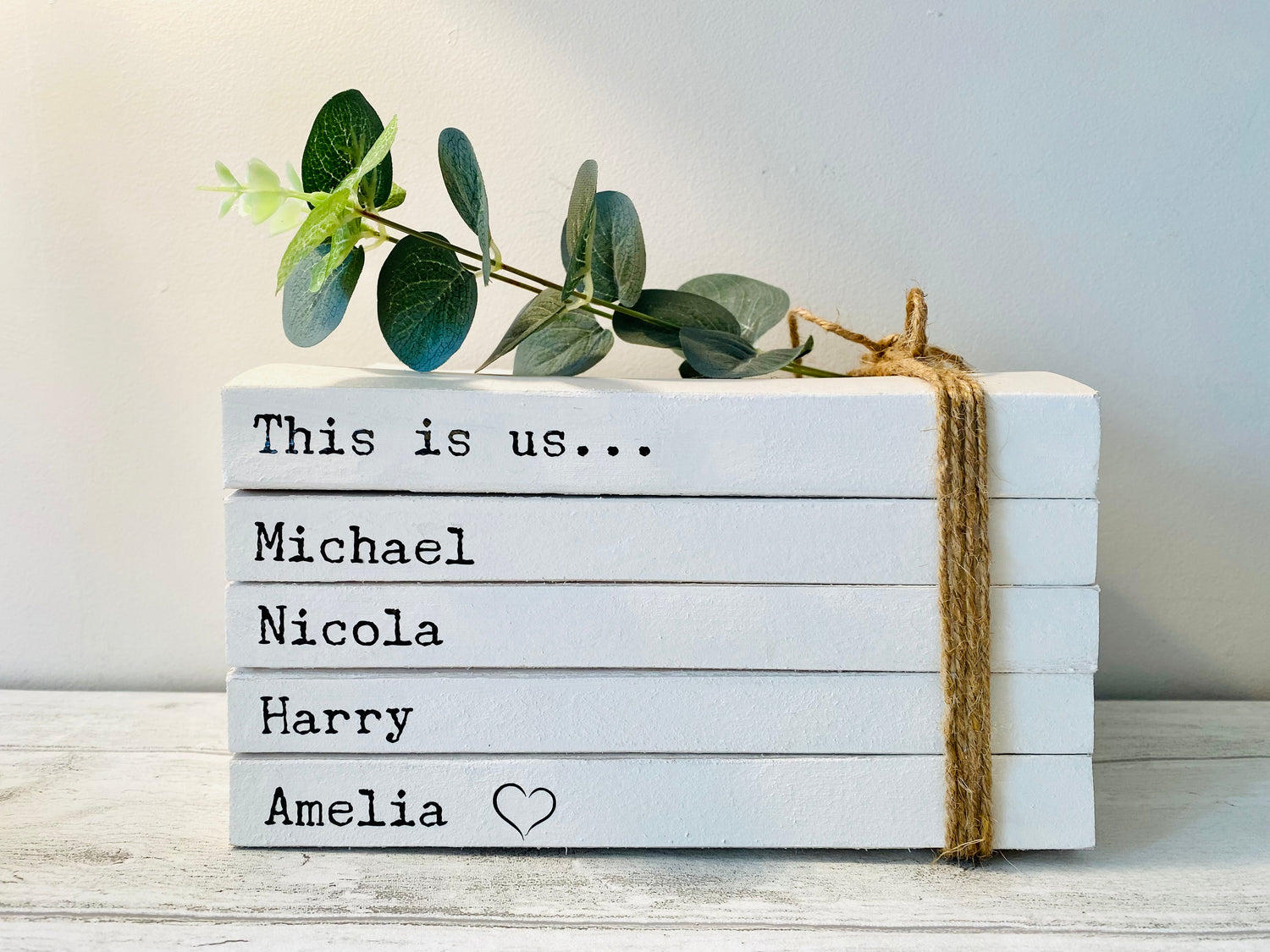 Stunning, decor-neutral book stacks, personalised with your names or special dates to...