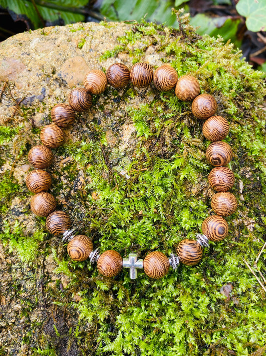 Mens Womens Natural Wooden Bead Bracelet- Meditation Prayer Yoga Cross Unisex Bracelet