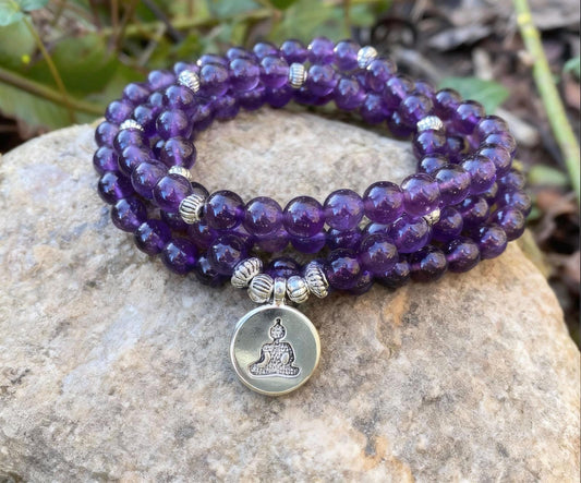 108 Mala Beads -Amethyst Natural Stone Meditation Necklace. Beautiful healing yoga bracelet. Japa Mala. Prayer beads. Chakra jewellery