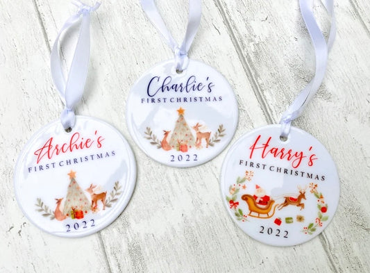 Personalised Christmas Bauble Decoration- Baby’s First Christmas! Our First Xmas as a Family- Custom Gift