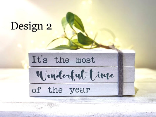 Most Wonderful Time of the Year Christmas Book Stack- Christmas Ornament- White Xmas Decor