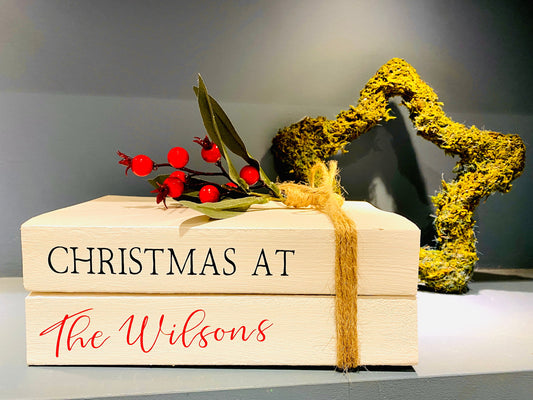 Personalised Christmas Book Stack Ornament with Family Name! Christmas Decorations- Festive Coffee Table & Bookcase Decor