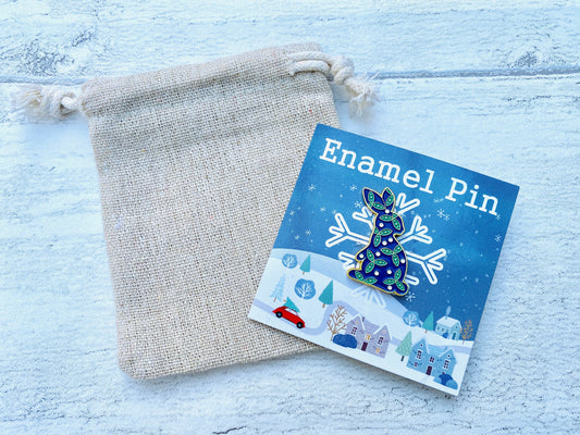 Christmas Mistletoe Bunny Rabbit Pin- Xmas Hare Festive Badge- Lapel