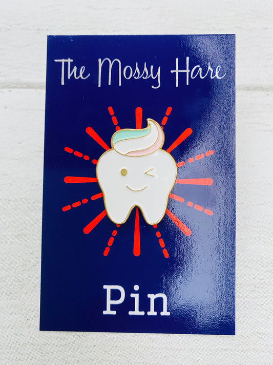 Cute Tooth Enamel Pin! Tooth Fairy Gift, Dentist Badge Lapel