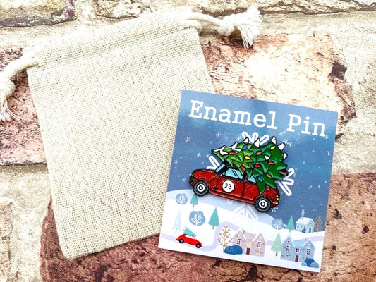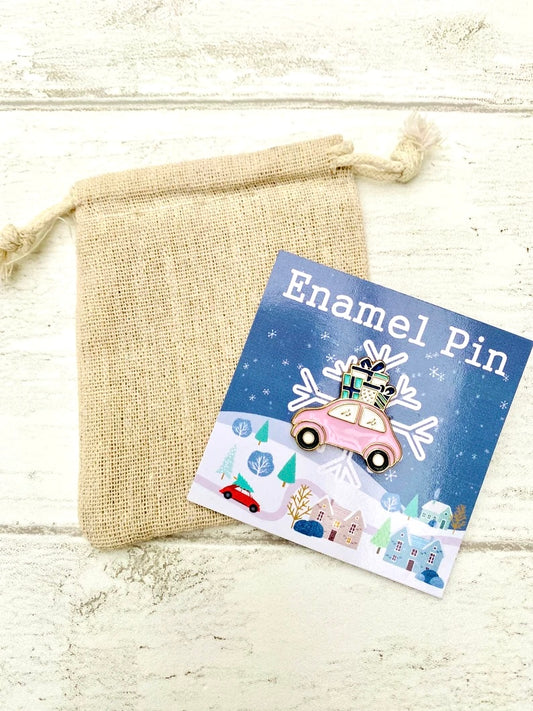 Christmas Car Enamel Pin- Festive Badge- Lapel