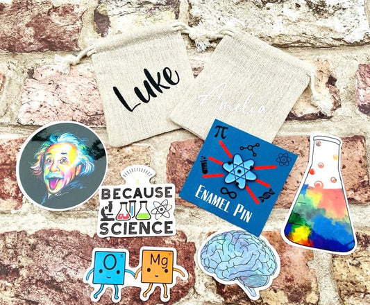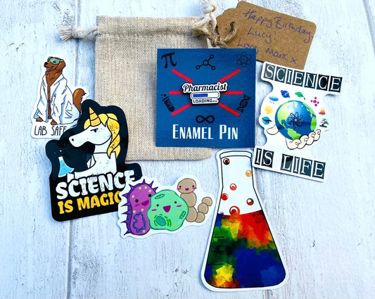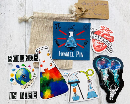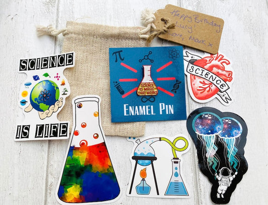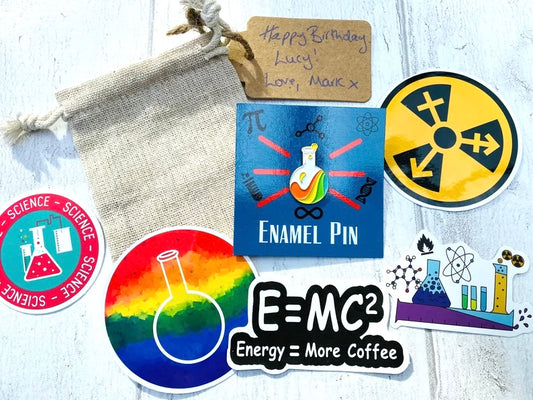 Personalised Science Enamel Pin (Chemistry, Physics)/ University Badge & waterproof stickers for laptops! Scientist- chemist- physicist gift
