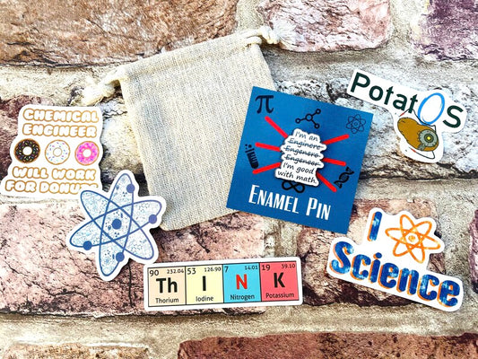 Funny Engineer Science Enamel Pin (Engineering, Physics)/ University Badge & waterproof stickers! Scientist- chemist- physicist gift