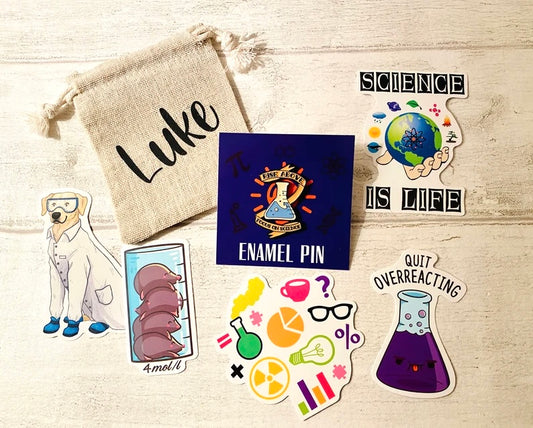 CUSTOM Love Science- Science Enamel Pin (Chemistry) University Badge & waterproof stickers for laptops! Scientist- chemist- physicist gift