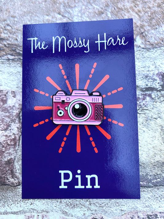 Retro Pink Camera - Photography Enamel Pin - Christmas badge lapel