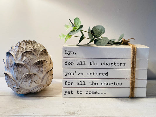 Personalised Retirement Leaving Gift! Beautiful, neutral home decor book stack