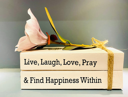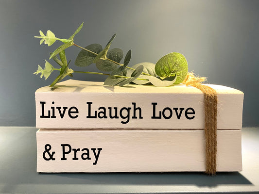 Live, Laugh, Love & Pray Custom Religious Book Stack- Personalised Words- Religious Decoration, Home Decor White Books, Faith Ornament