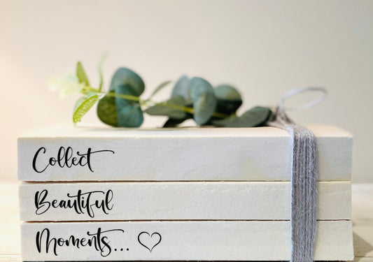 Collect Beautiful Moments… Hallway, Coffee table decor- Bookcase Staging book stack- Welcome Sign, hallway rustic decor- House Warming Gift