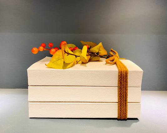 Stunning, decor-neutral book stacks, personalised with your names or special dates to create a beautiful home decor ornament. Perfect for a hall console table, bookshelf or coffee table display. Made with real books.