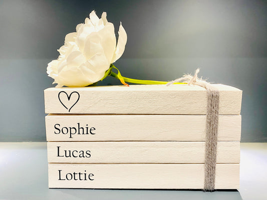 Family Names Personalised Book Stack! White Book Stacks- home decor ornament, coffee table bookshelf decor, wedding decor