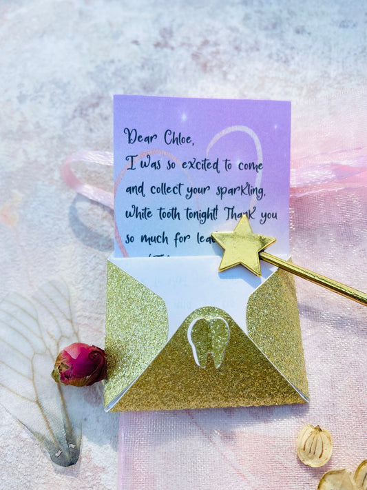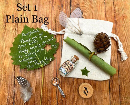 Tooth Fairy Set- Personalised Fairy Letter, bag with gifts, wand, fairy dust, fairy wings and more