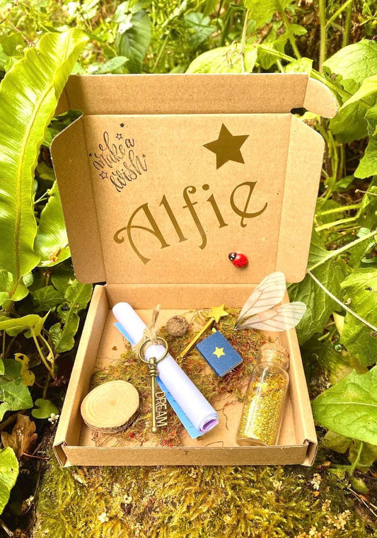 Wish Fairy- Tooth Fairy Letter Personalised gift box- Fairy Kit includes: Wish bottle, mini magnifying glass, magic feather, bobbin, cone