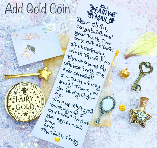 6 Personalised Tooth Fairy Letters with Fairy Dust & Gold Coins! Tooth Fairy Kit, Tooth Fairy Set with Fairy Gifts! First Tooth Fairy Visit