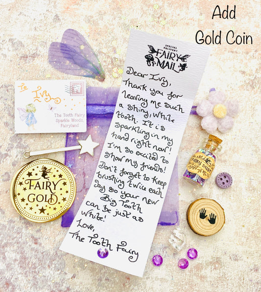 Tooth Fairy Kit- Tooth Fairy Letter, Fairy Dust and Tooth Fairy Gold Coin- First Tooth or Other Tooth. Tooth Fairy Gifts & Tooth Collection