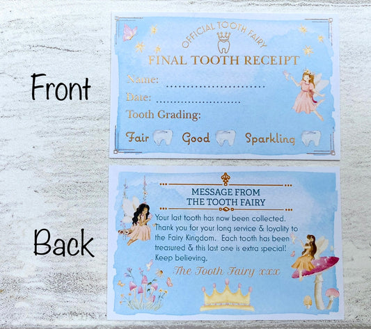 LAST TOOTH- Tooth Fairy Collection Certificate! Lost Tooth Receipt -Tooth Fairy Receipt! Lovely Tooth Fairy Visit Keepsake, Tooth Fairy Gift