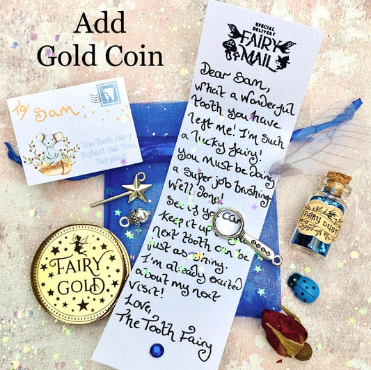 Tooth Fairy Kit- Tooth Fairy Letter, Fairy Dust and Tooth Fairy Gold Coin- First Tooth or Other Tooth. Tooth Fairy Gifts & Tooth Collection