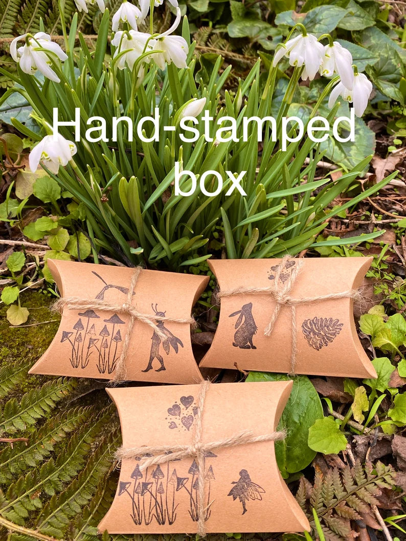Each Fairy Parcel comes in a brown Kraft box tied with twine. You can choose to have a plain box or have a Fairy design hand-stamped onto it. Designs will vary but boy fairy designs will be sent to boys and girl fairies to girls.