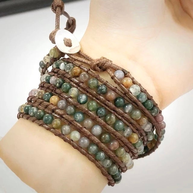 This beaded bracelet, wraps around the wrist so that it is multi-layered creating a cool, earthly boho look.
