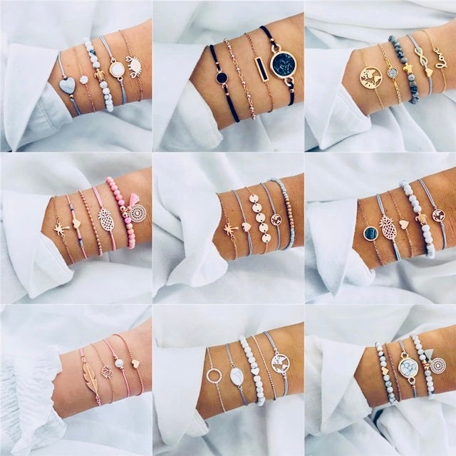These stacking boho style bracelets are perfect for beach holidays. Each set is designed to perfectly coordinate and suit any outfit.