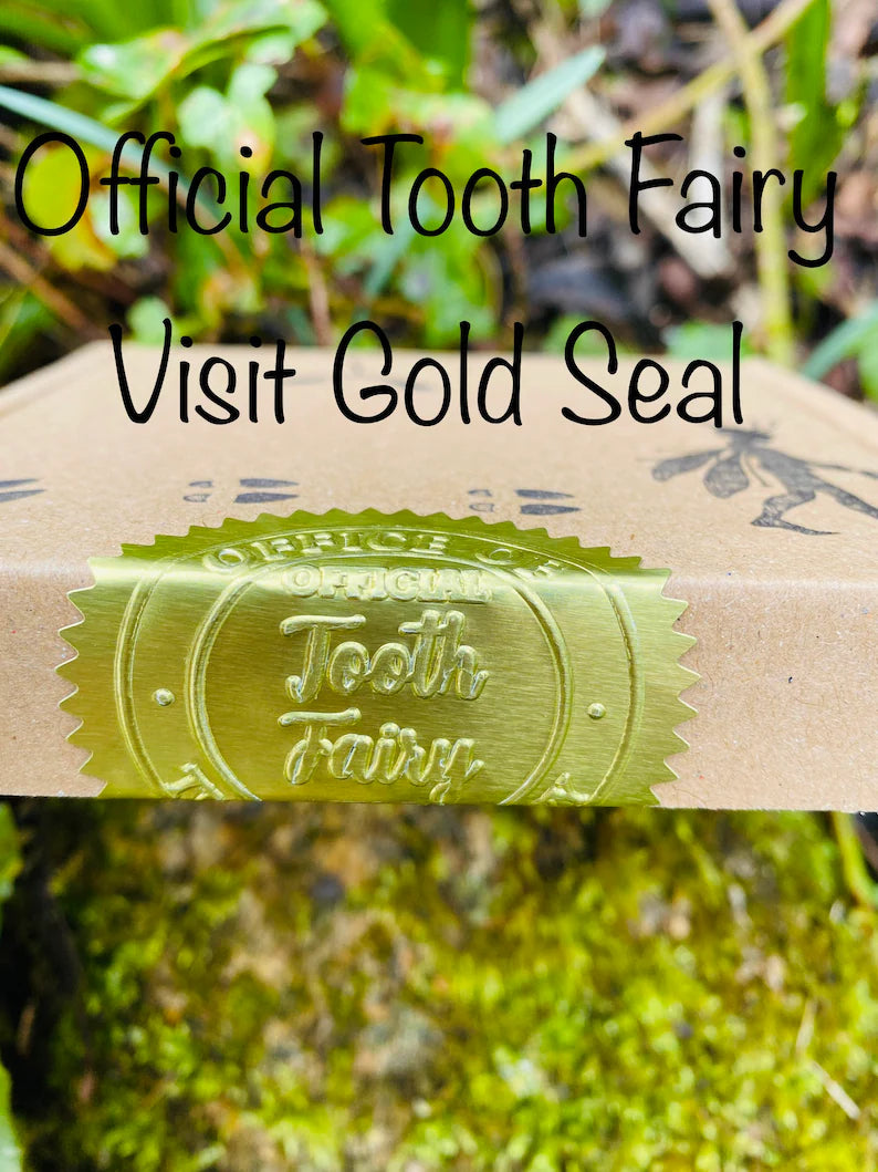 GOLD SEAL-There is also the option to add an ‘Official Tooth Fairy Visit’ large gold seal closing the box.