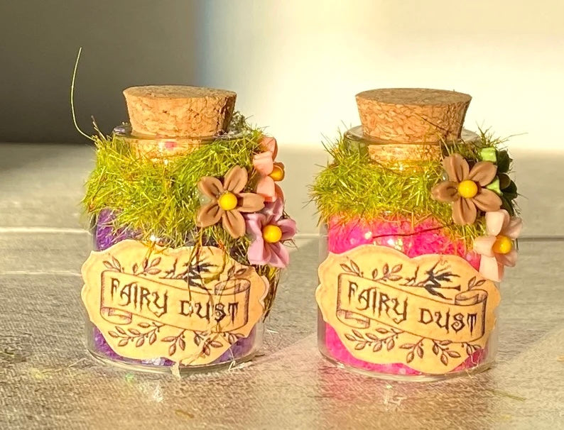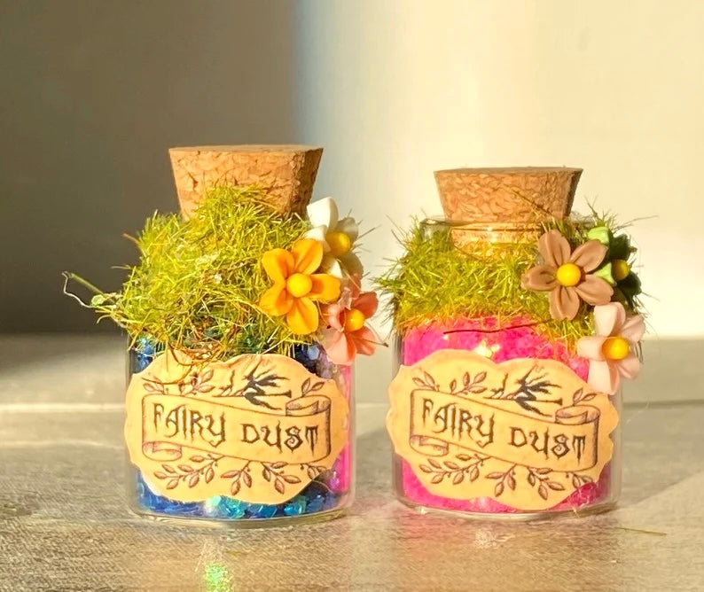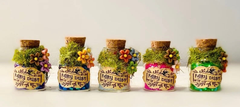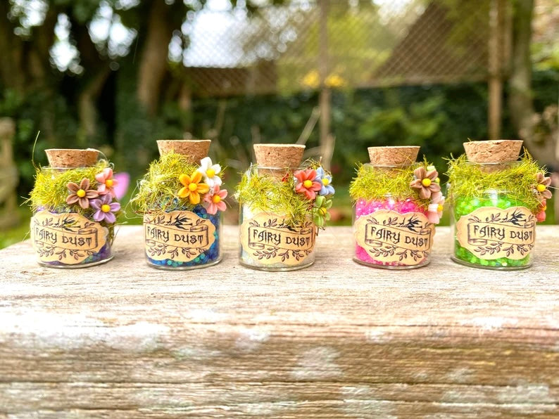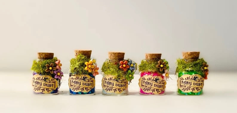 Mini glass bottles filled with magic Fairy Dust in a variety of colours (you can request a colour in the personalisation box, otherwise a colour will be sent at random).