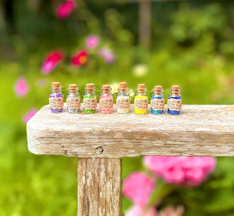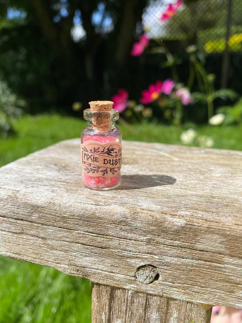Mini glass bottles filled with magic Fairy Dust or Pixie Dust measuring just 3.4cm tall! Finished with an artistic, rustic and authentic label to bring the magic alive!