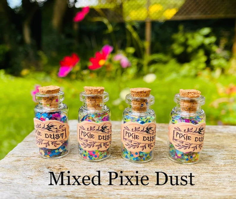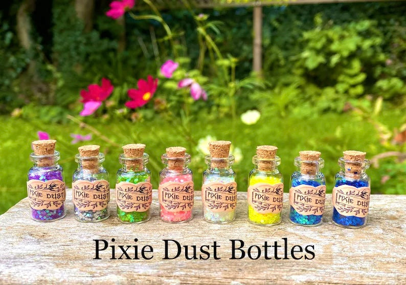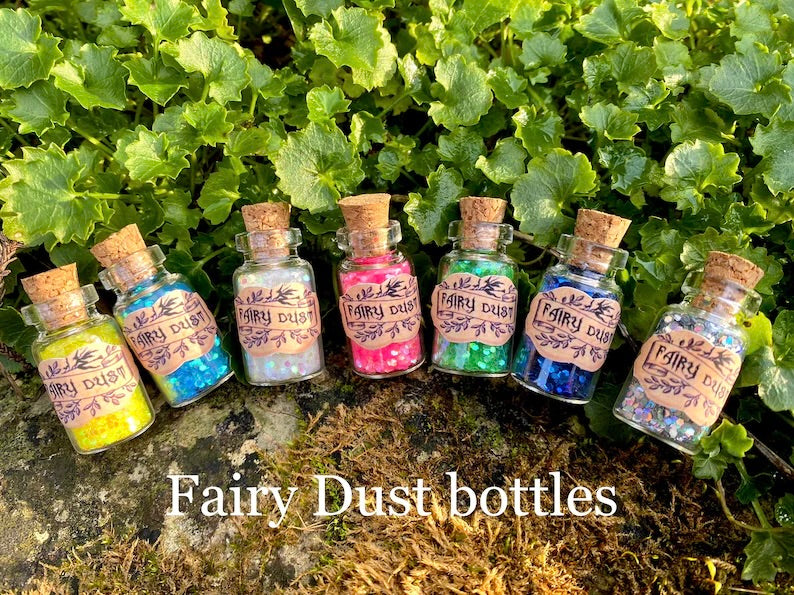 Fairy Dust Bottles - Pixie Dust Bottles- perfect gift from the Tooth Fairy, Party Bag Fillers- mini glass Fairy Dust Glitter Bottles