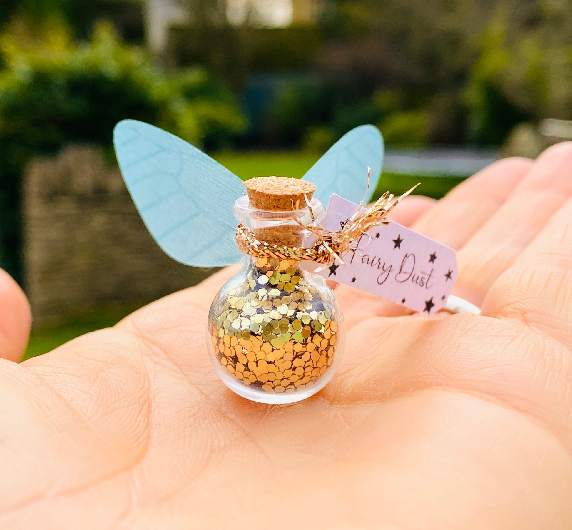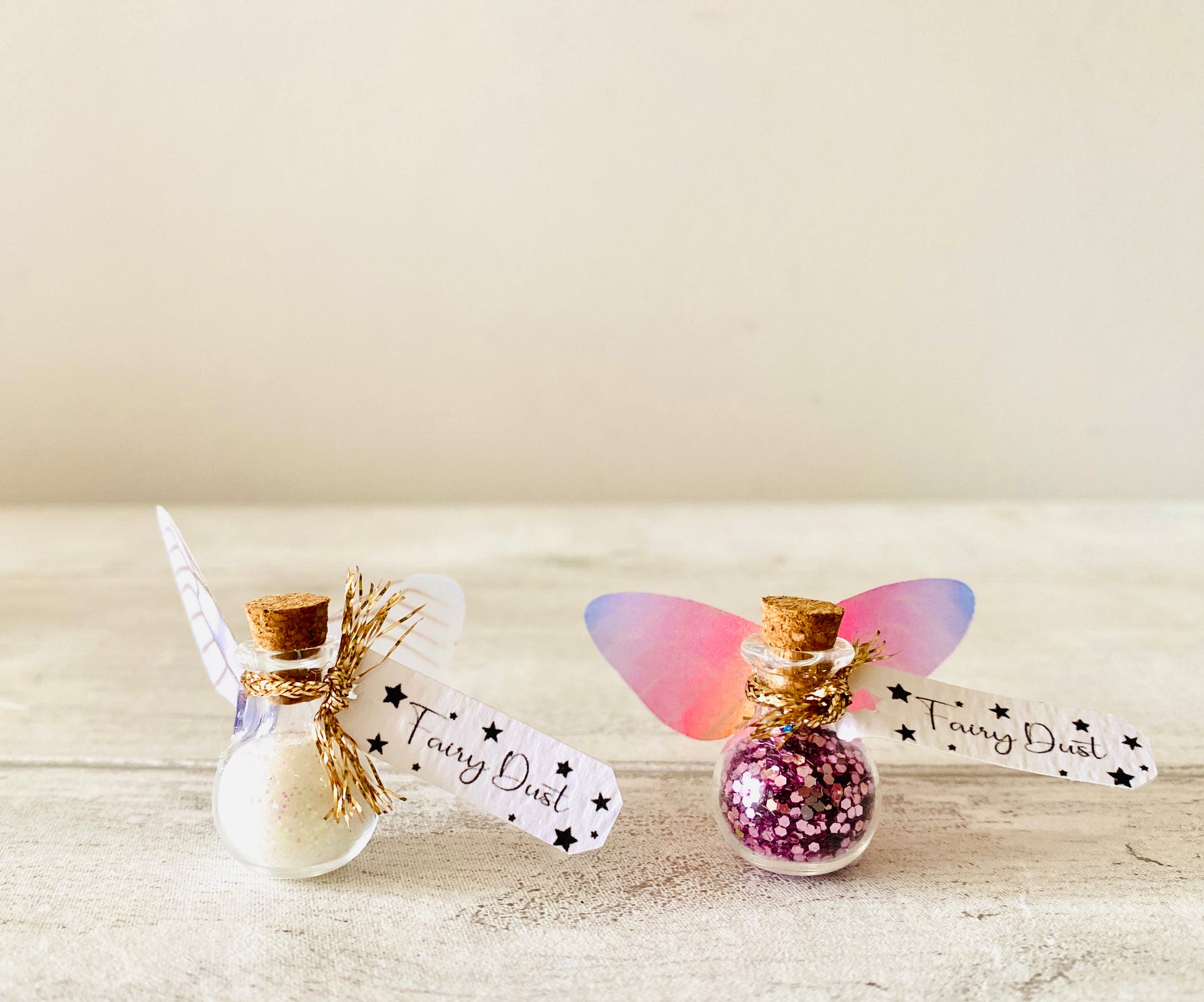Fairy Dust Bottles with Fairy Wings perfect gift from the Tooth Fairy or Fairy Party Bag Fillers / Wedding Favours -mini Fairy Dust Bottles
