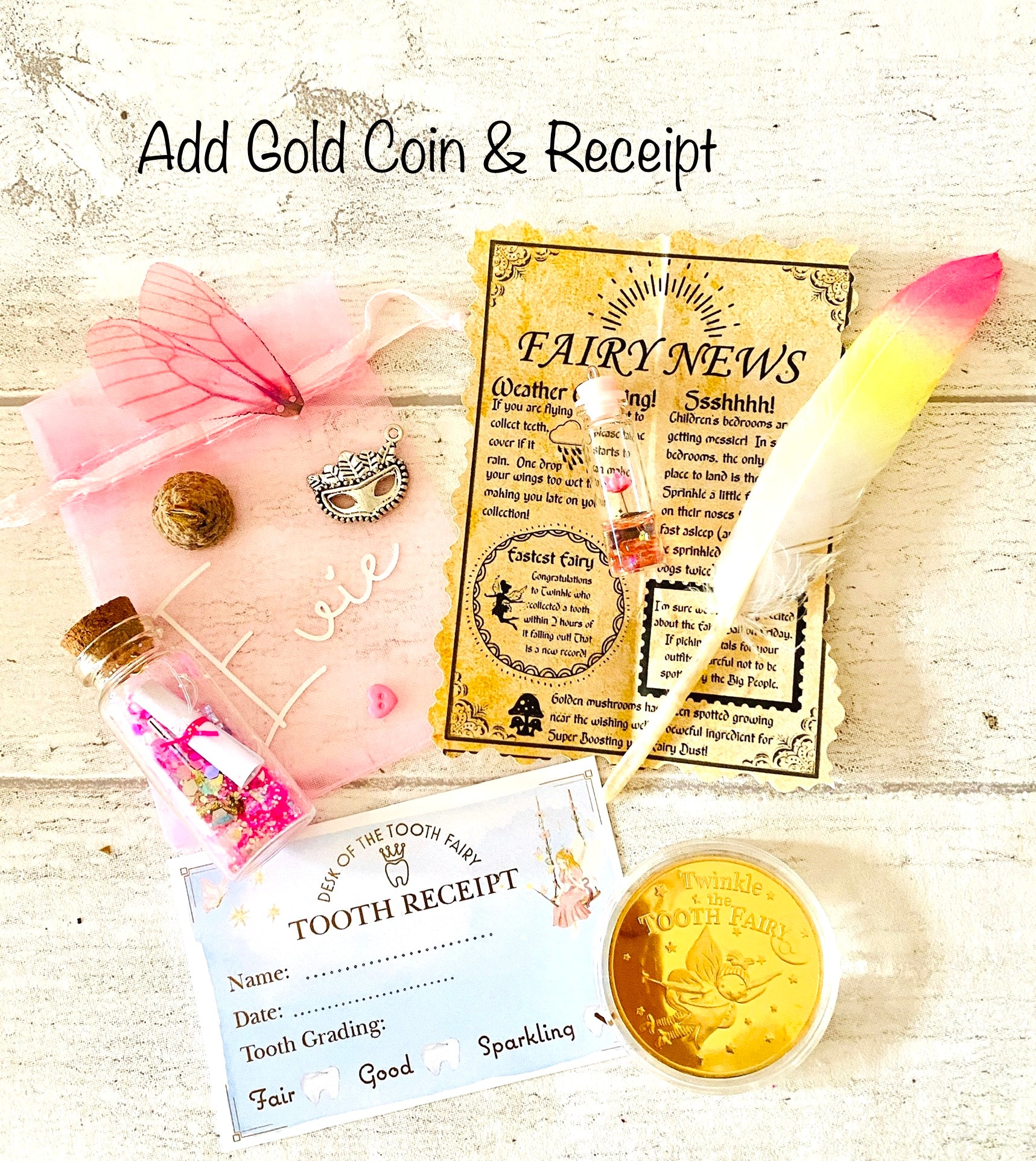 There is the option to add a large (4cm!), double sided fairy gold coin to your child’s set, creating a memorable keepsake.