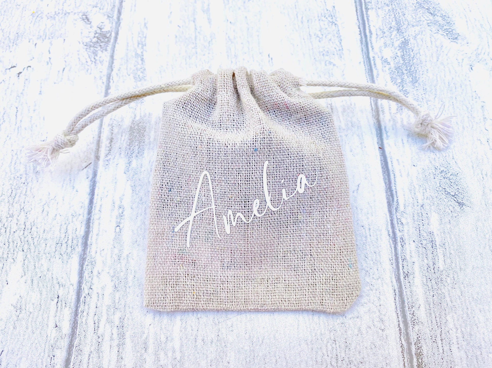 You can add a natural linen pouch to make a lovely gift. The pouch can be personalised with a name (or your own wording -up to 4 words).