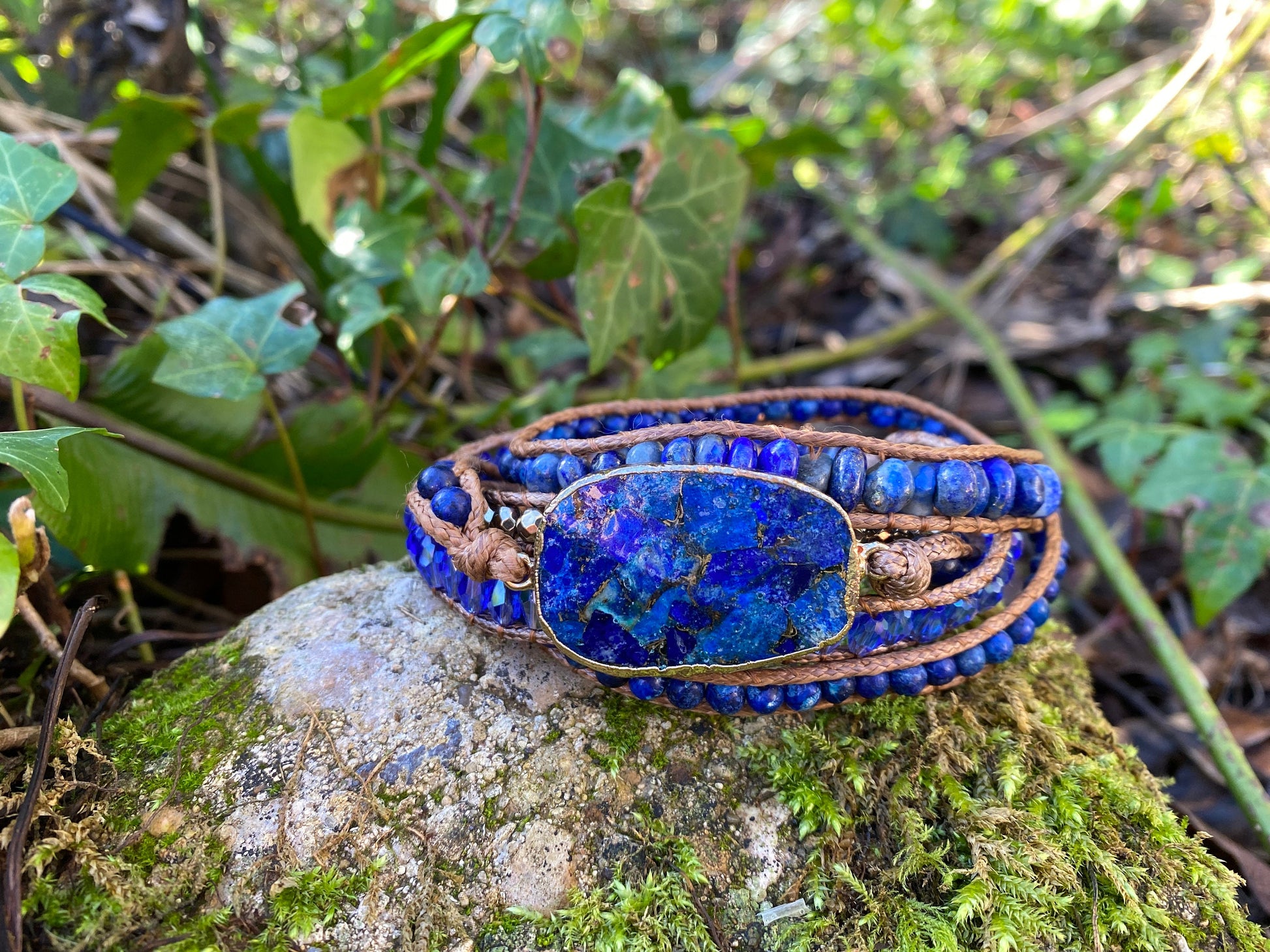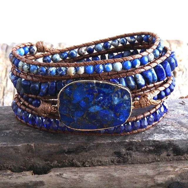 Lapis Lazuli Boho Wrap Bracelet -Layers Wrap Chakra Bracelet - natural stone entwined with Gemstones- Healing & Positive Energy -Yoga