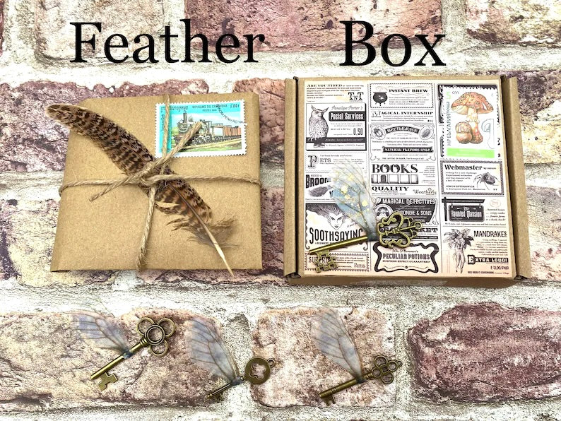 Keys can be gift wrapped in tissue paper and then in one of two styles: Feather or Box -great if giving as a gift.