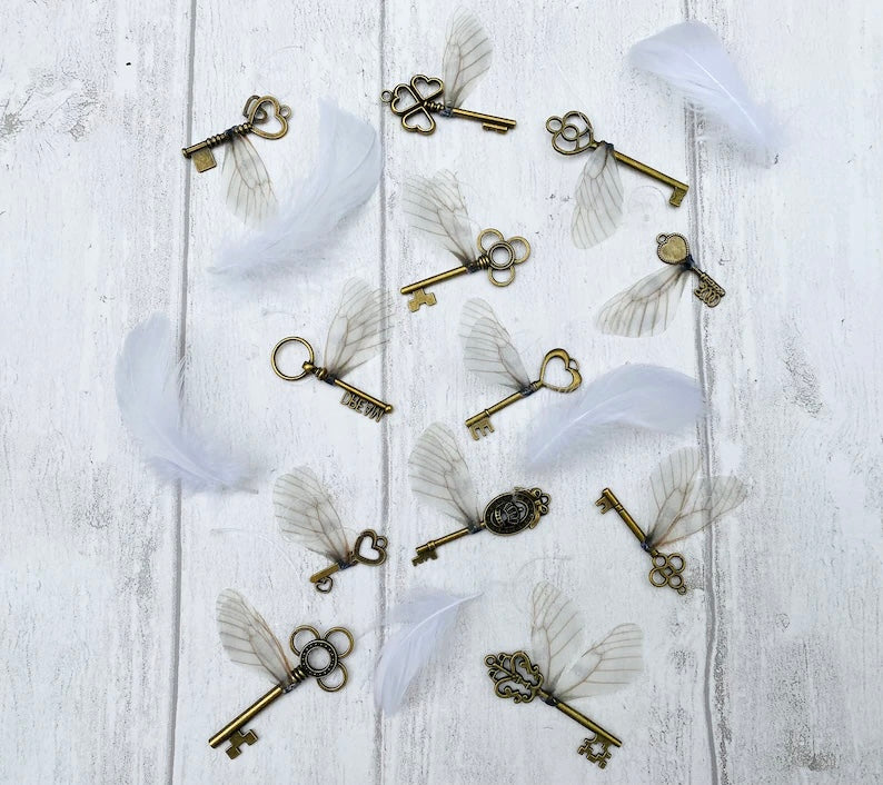 Magical Flying Keys! Christmas Tree Winged Keys, Magic Party decor, Room Decor, Fairy Wedding, Magic Christmas Decorations Gift