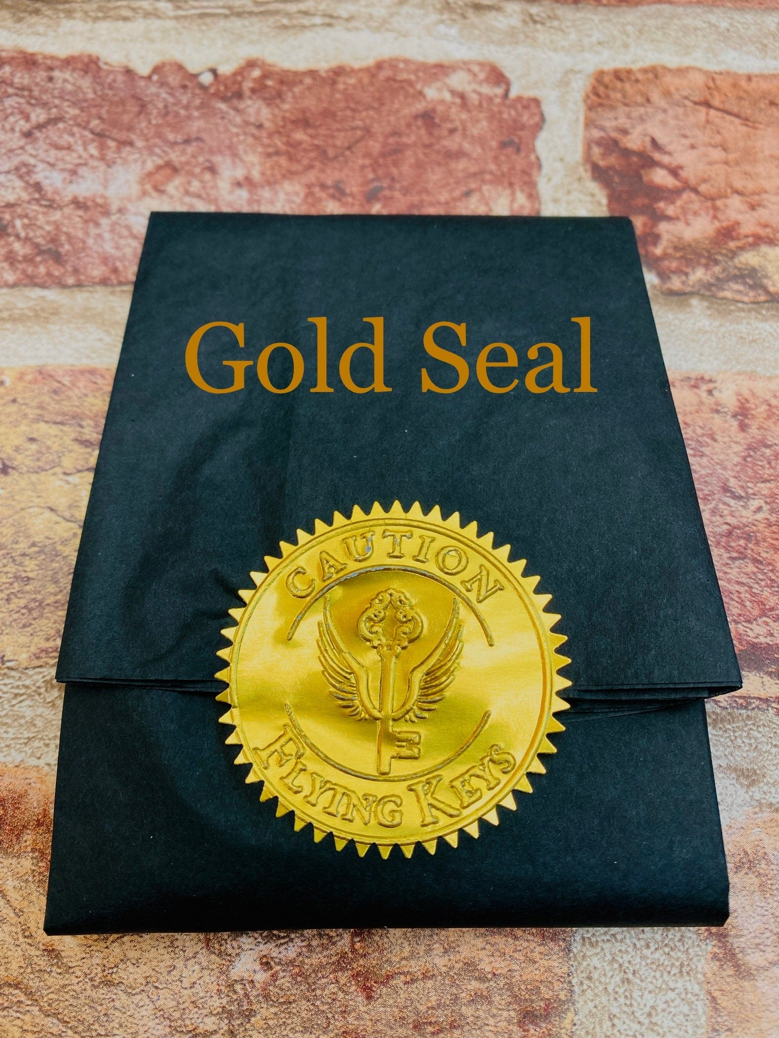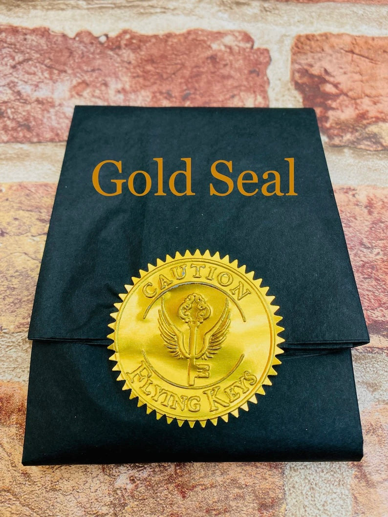 You can also add a large gold seal (4cm across) stating ‘Caution- Flying Keys’- a fun addition for any magical witchcraft fan!