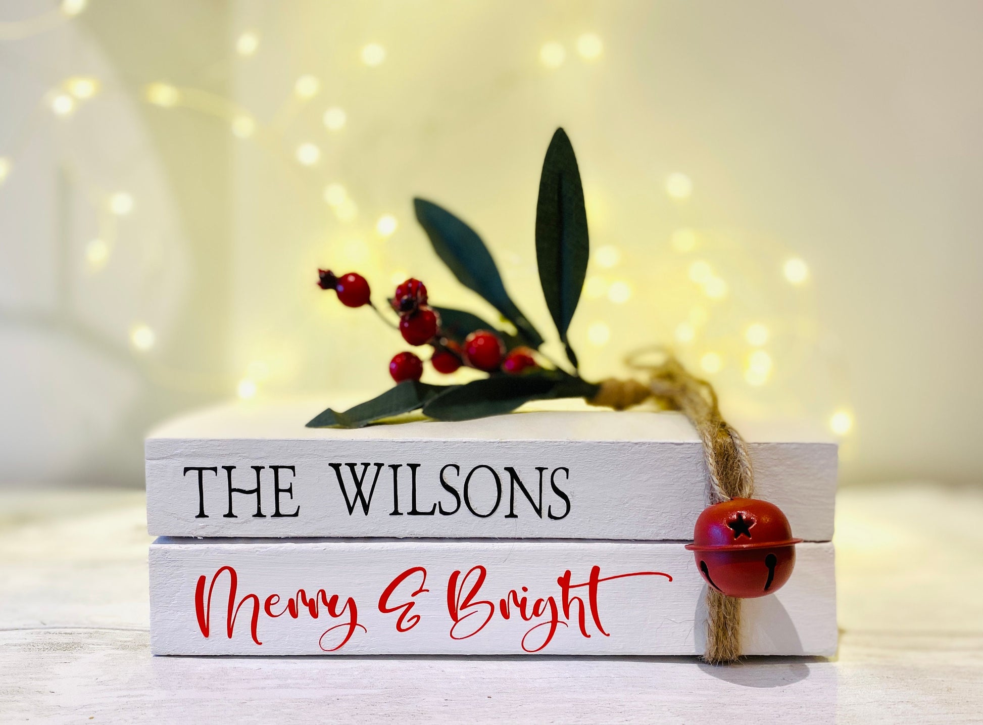 Beautiful, festive book stacks personalised with your family name. These look stunning in a hallway or as coffee table/bookshelf decor.