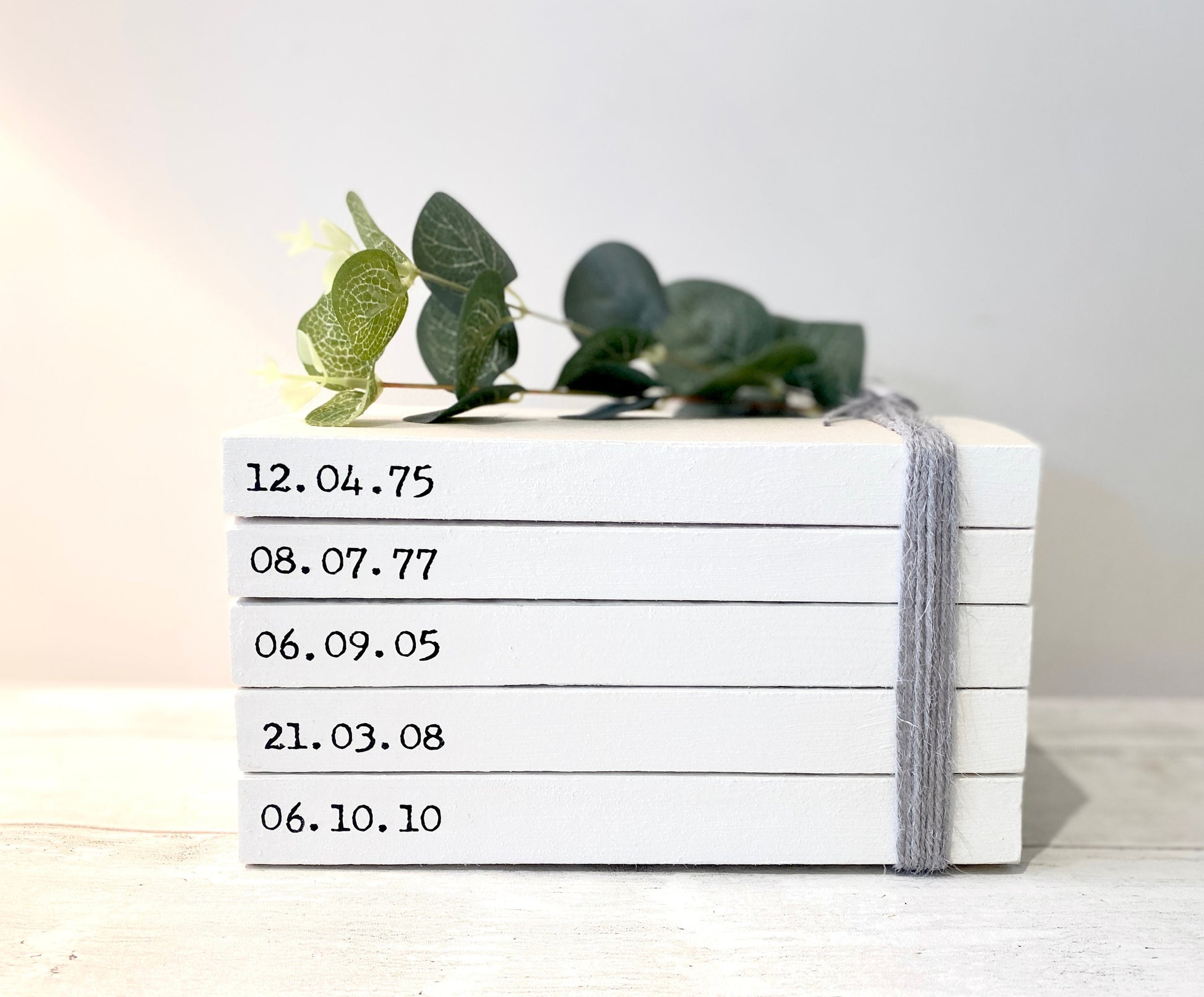 Special Dates Personalised Book Stack! White Book Stacks- home decor ornament, coffee table bookshelf decor, wedding decor