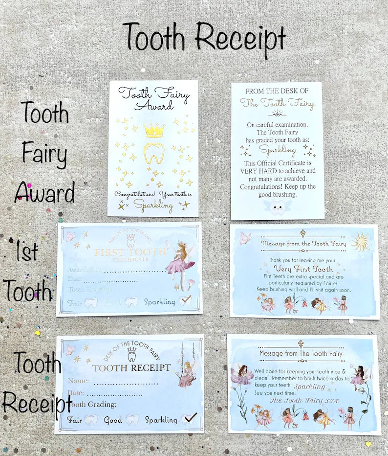 You can also choose to include a gold-foiled Tooth Collection Receipt from the Tooth Fairy (there is a choice of 1st Tooth Receipt, Tooth Receipt and Special Award from The Tooth Fairy for a Sparkling Tooth!). These make for lovely keepsakes.