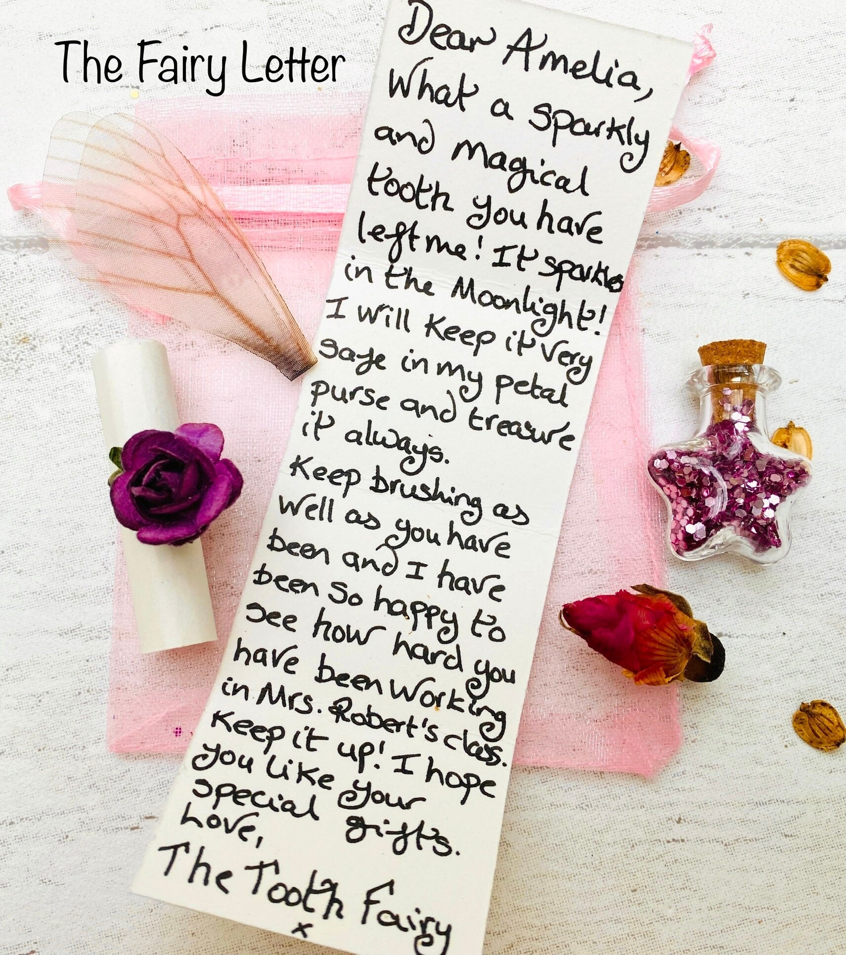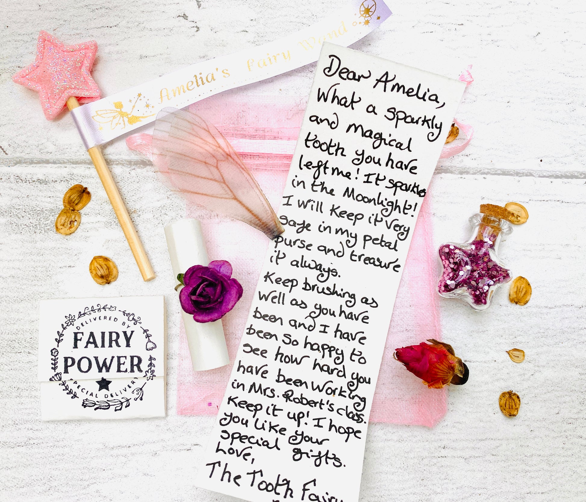 Beautiful Tooth Fairy set with a handwritten, personalised note from The Tooth Fairy!