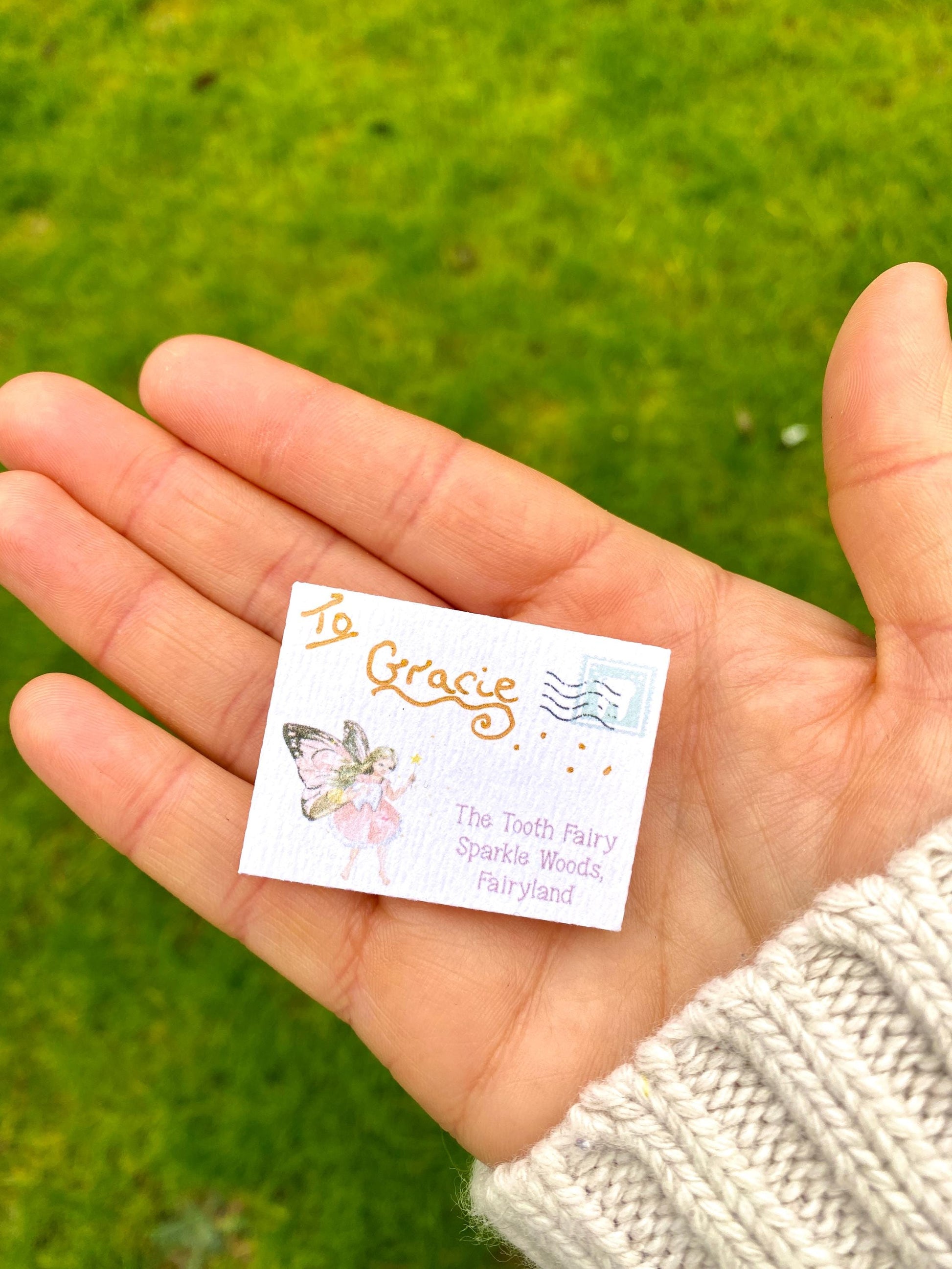 This pretty woodland Tooth Fairy set comes with a little letter addressed to your child that closes with a tooth clasp.