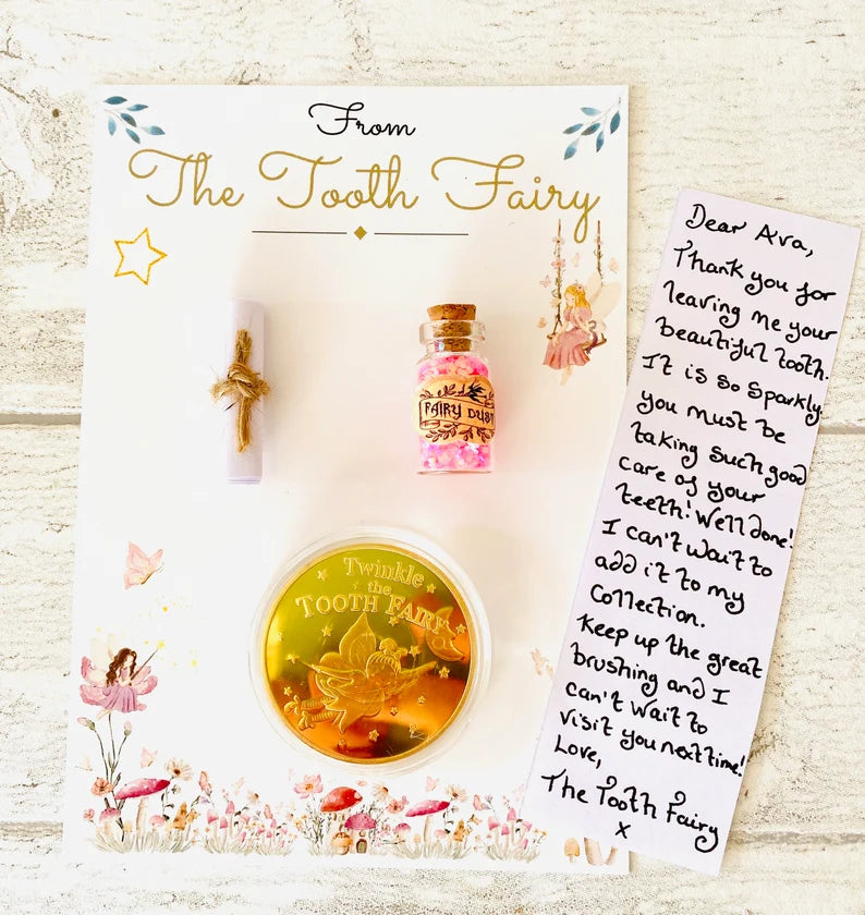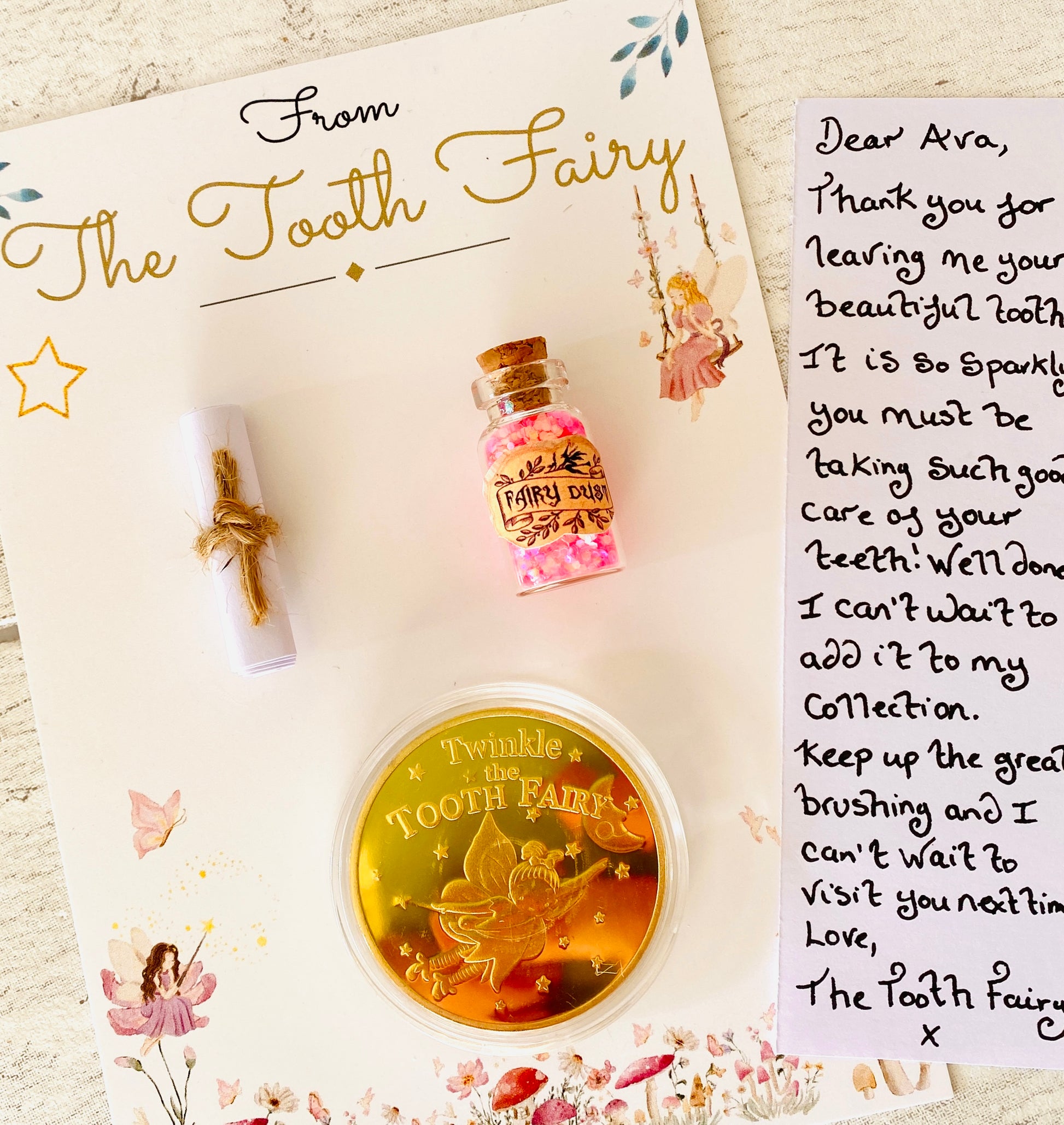 Tooth Fairy Kit With Tooth Fairy Gifts. PersonalIsed Tooth Fairy Letter. Tooth Fairy Set with Fairy Gold Coin, Fairy Dust (1st Tooth Fairy)