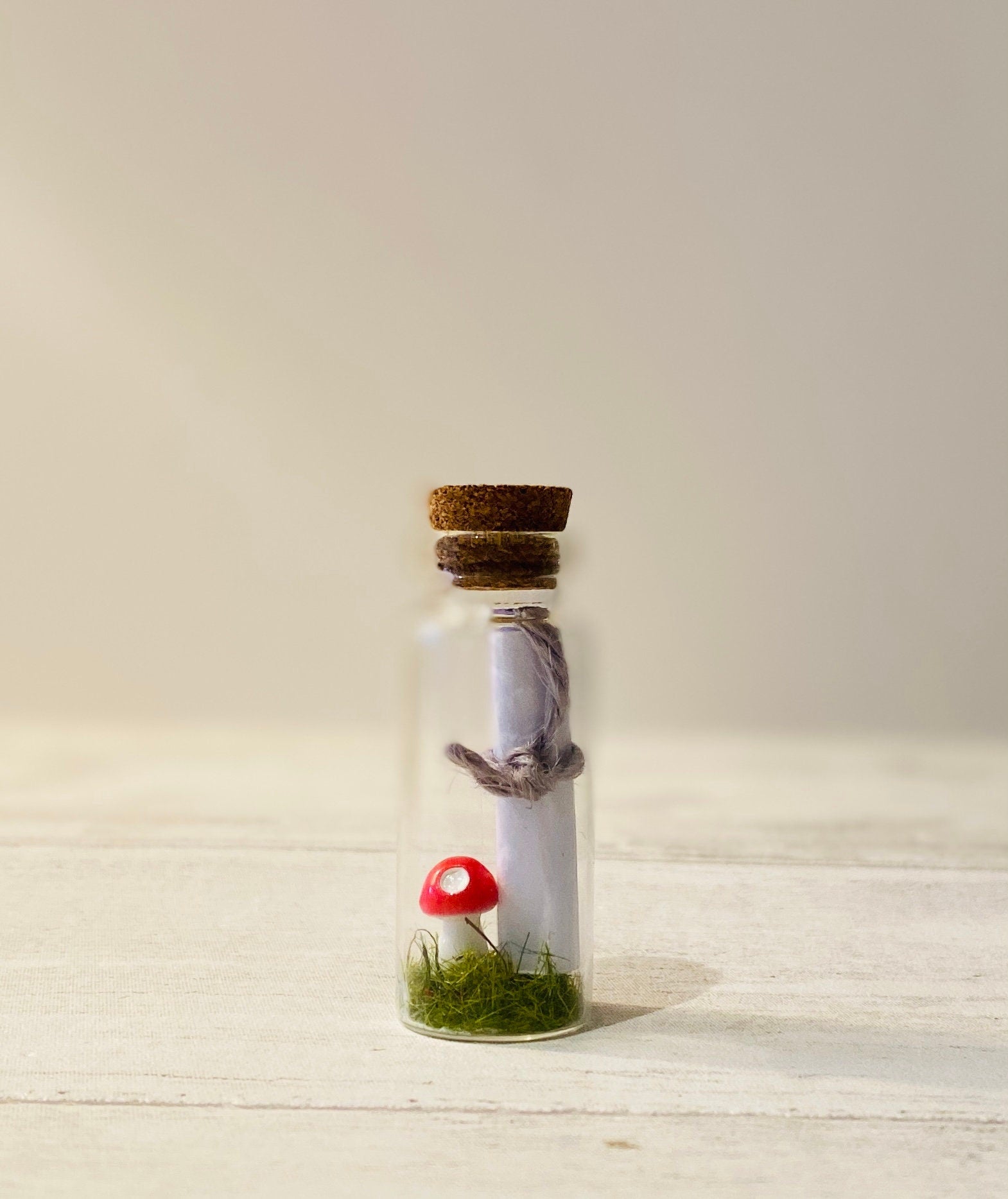 A little slice of Fairyland caught in a bottle! Each glass bottle contains moss and a red toadstool as well as a scroll letter from the Tooth Fairy.