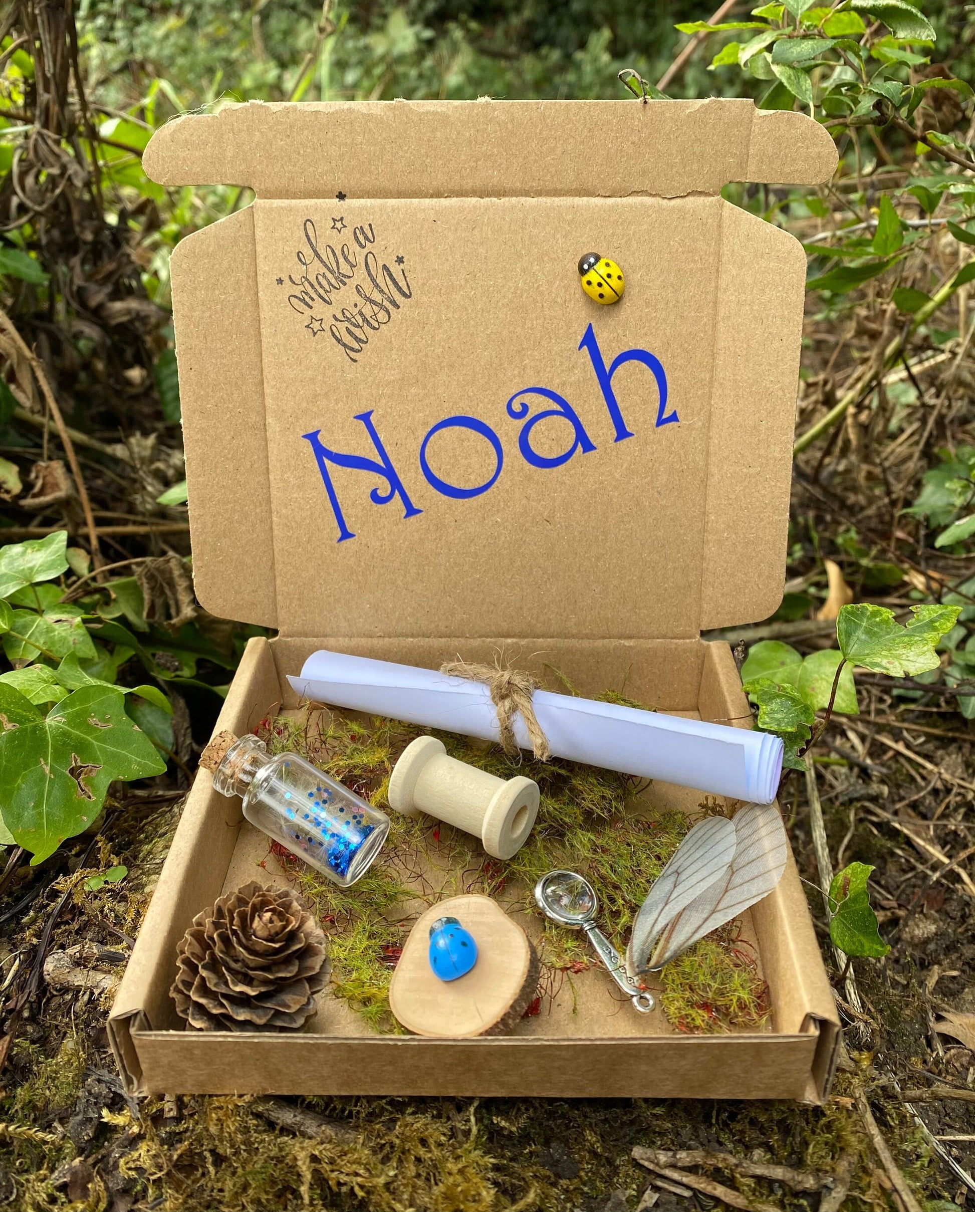 Boy’s Tooth Fairy Kit- Wish Fairy- Personalised Letter gift box- Fairy Kit includes: Wish bottle fairy wings, bobbin, mini magnifying glass, cone