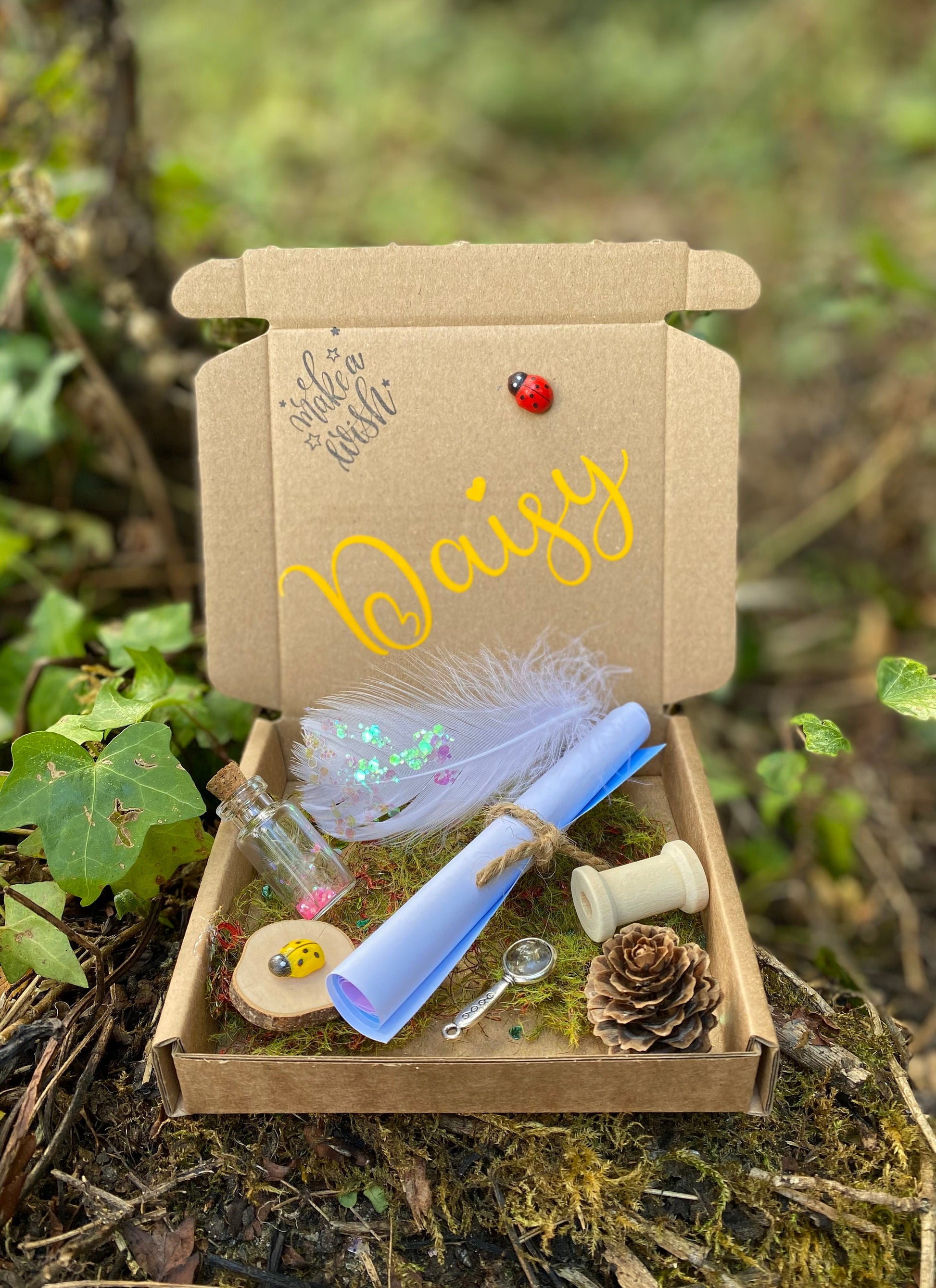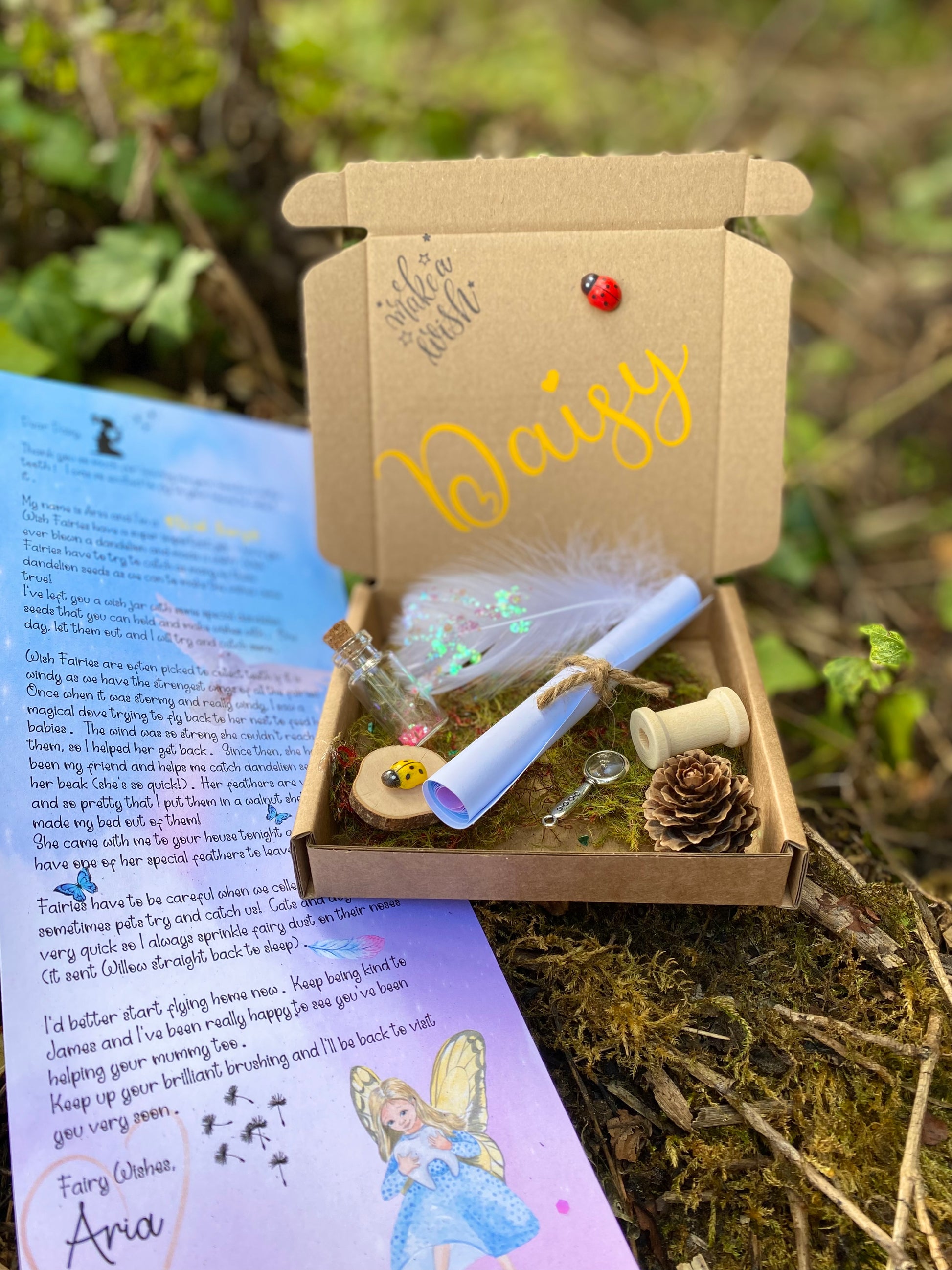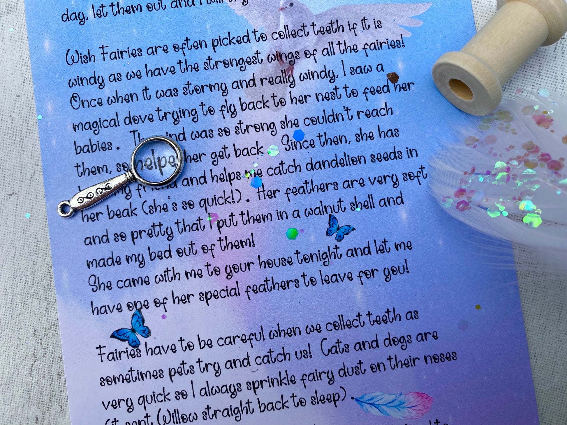 Wish Fairy- Tooth Fairy Letter Personalised gift box- Fairy Kit includes: Wish bottle, mini magnifying glass, magic feather, bobbin, cone