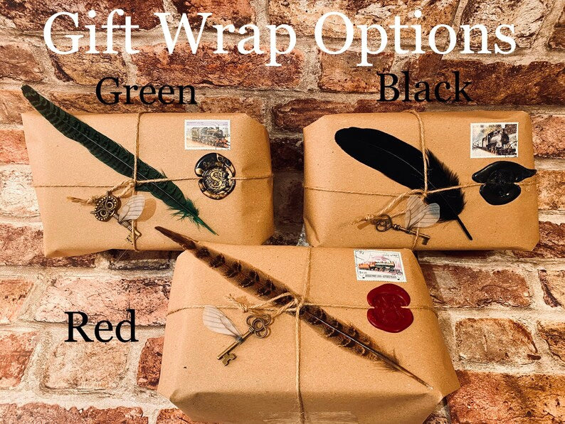 *FEATHERS- there is the choice to add a real feather to your books to create a wizarding feel (feathers are green, brown or white and will be sent at random).
