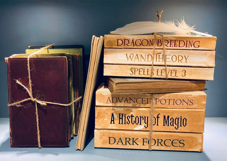Wizard Magic Spell Books, Wizard School Text Books, Rustic Old Spell Books, Wizard Party Decor, Magic Wizard Bedroom Decor, Wizard Party Decorations, Wizard Wedding Decor