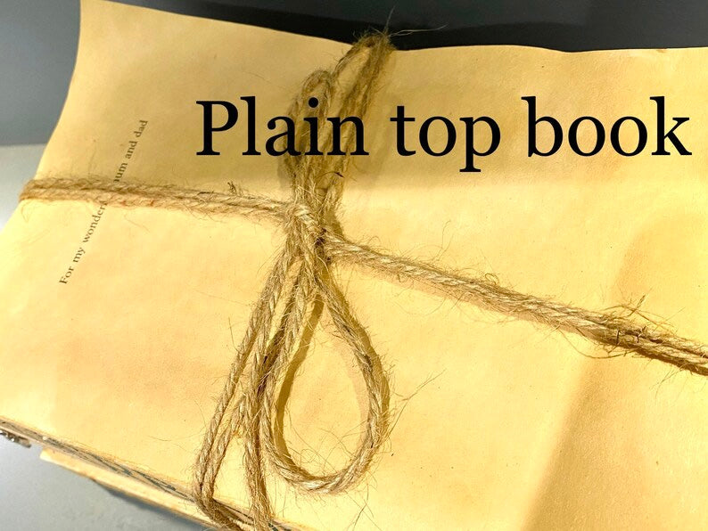 Books can be purchased individually or you can buy more to make a stack where they will be glued together and tied with rustic twine.